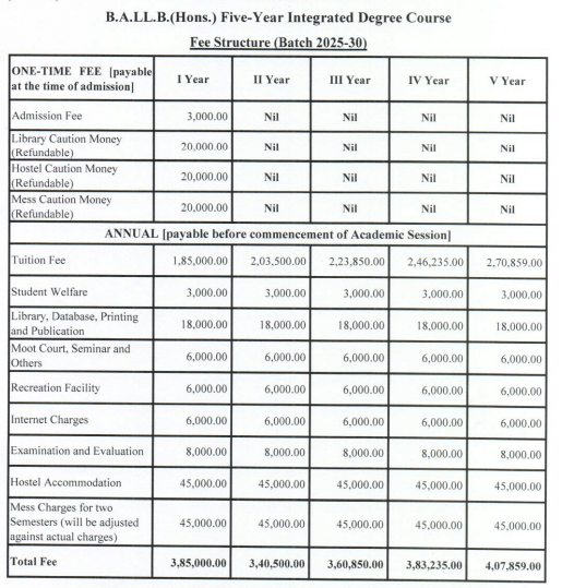 - The total fees for BALLB {Hons.} is ₹ 13.87 Lakhs.