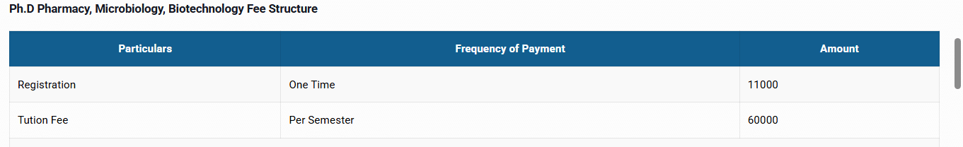 - This includes a total tuition fee of ₹ 2.7 Lakhs, Other Fees of ₹ 11,000.