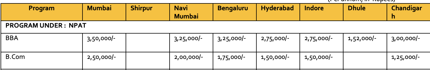 | NMIMS Indore | ₹ 3.75 Lakhs |