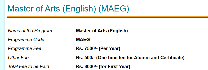 FEE STRUCTURE AS PER OFFICIAL WEBSITE
