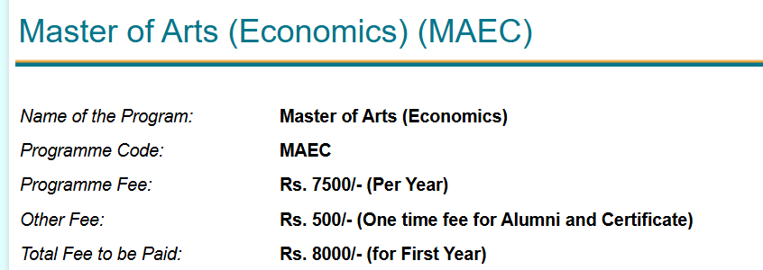FEE STRUCTURE AS PER OFFICIAL WEBSITE