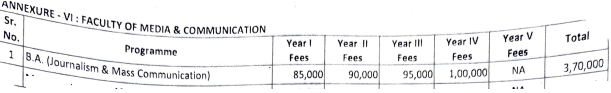 | Fees | Year 1 (in INR) | Year 2 (in INR) | Year 3 (in INR) | Year 4 (in INR) |