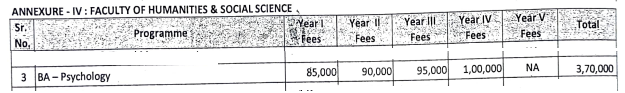 FEE STRUCTURE AS PER OFFICIAL WEBSITE