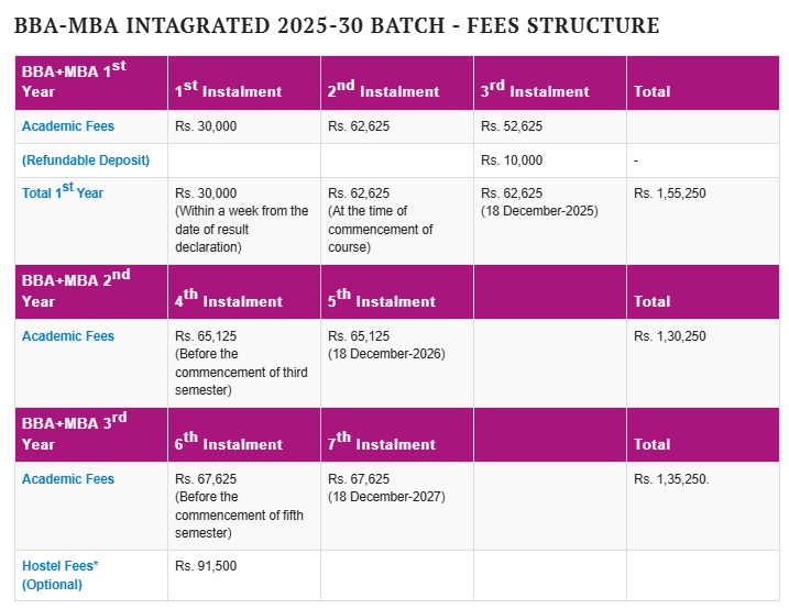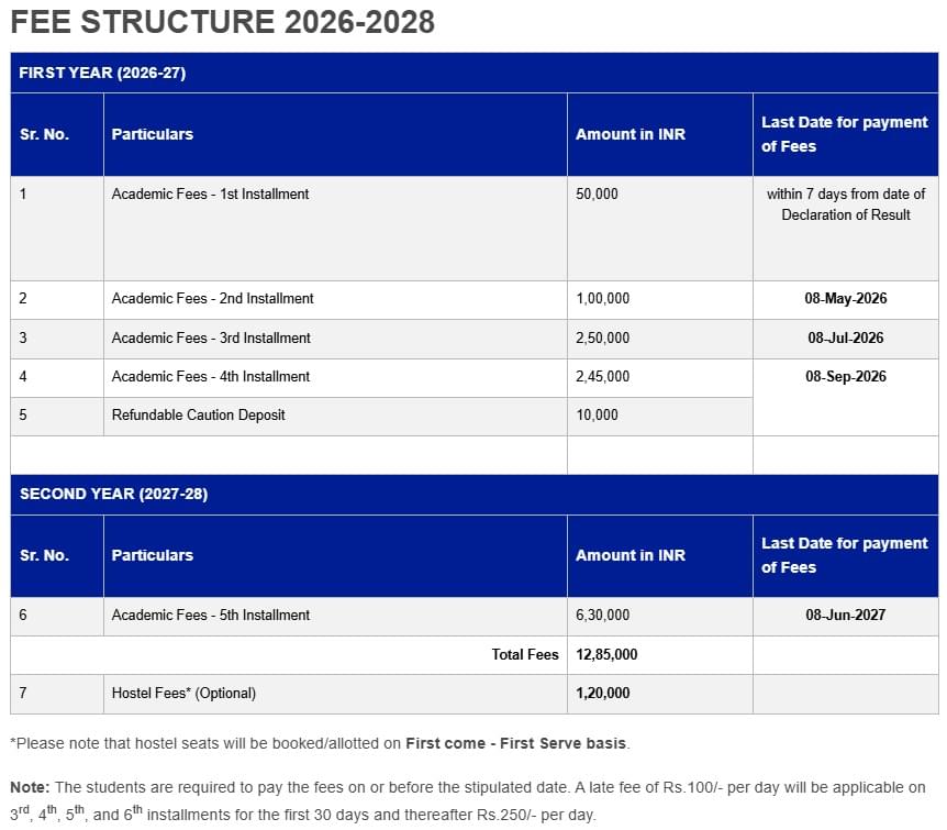 | Fees (2025 - 2026) | Year 1 (in INR) | Year 2 (in INR) | Year 3 (in INR) | Year 4 (in INR) | Year 5 (in INR) |