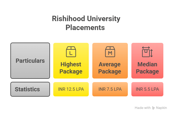For 2025, Rishihood University Placements concluded recently. The university recorded the highest package being offered at INR 12.5 LPA, while Rishihood University average package stood at INR 7.5 LPA. Some of the top recruiters here are Ernst&Young, Kohler, Bosch, Motilal Oswal, and Adobe, amomg others.