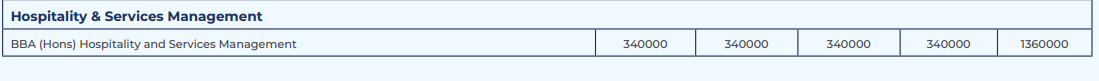- The total fees for BBA {Hons.} Hospitality Management is ₹ 13.6 Lakhs.