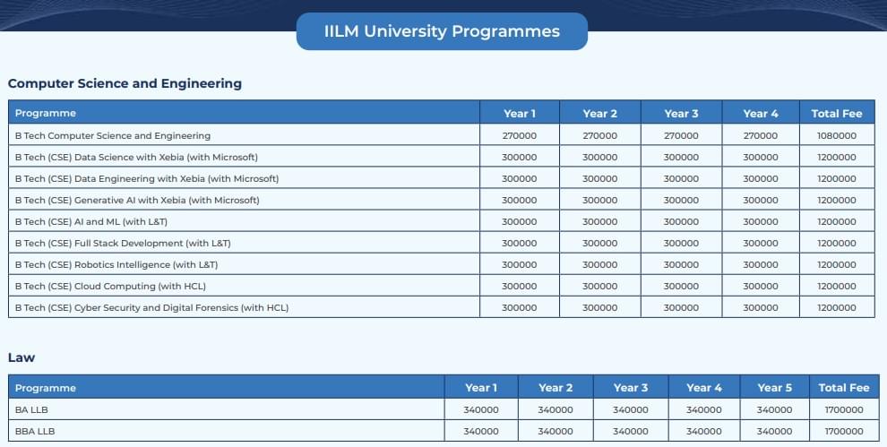 Other programs like BBA, BALLB, and BA Psychology have an annual fee of Rs. 3,60,000. Optional medical insurance is available for Rs. 800.