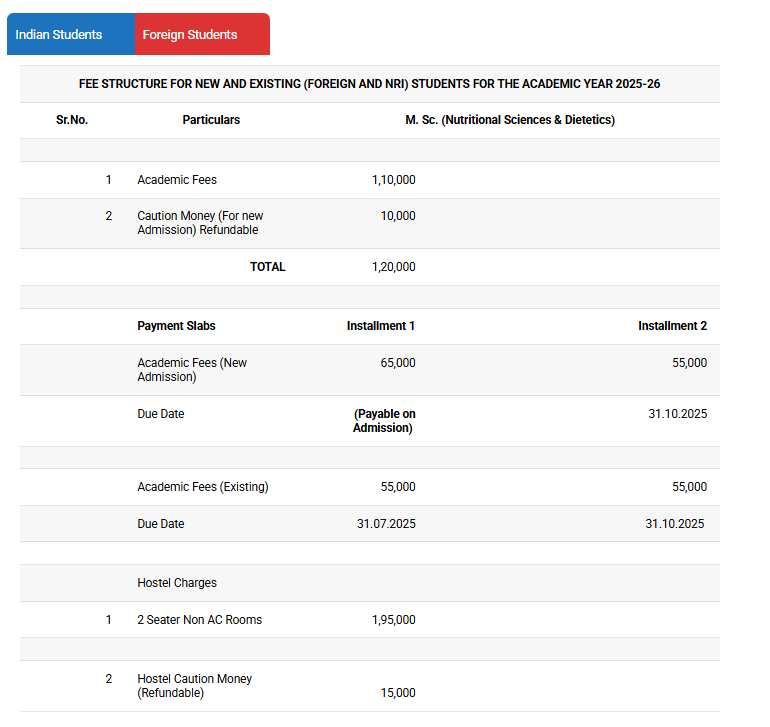 | Fee Type | Total Amount (INR) |