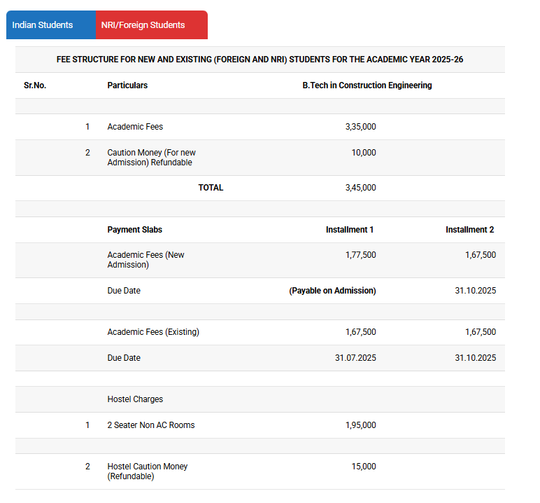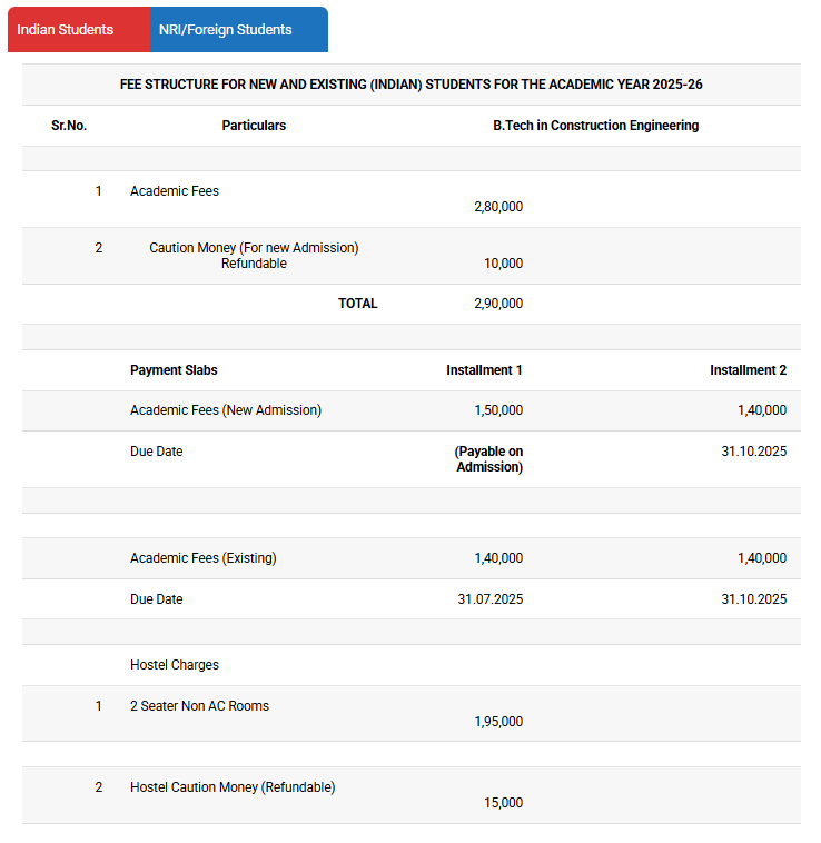 The B.Tech Construction program at SSPU costs 252,000 per year. The university's placement cell plays a crucial role in helping students find employment opportunities. It assists them in securing jobs with preferred companies, significantly contributing to their future career success.