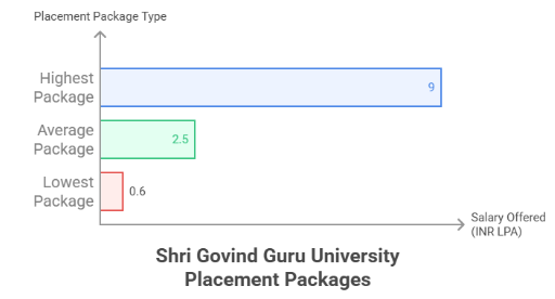 The SGGU 2025 placement report is not out yet. However, as per our findings, the highest package offered so far is INR 9 LPA, the average package is INR 2.5 LPA, and the lowest is INR 0.6 LPA. The SGGU Placement Top recruiters include Alembic, Sun Pharma, Accenture, Al Futtaim, Apex Pharma, Arvind, Axis Bank, Bajaj Capital, Basware, Cosmic, and others.