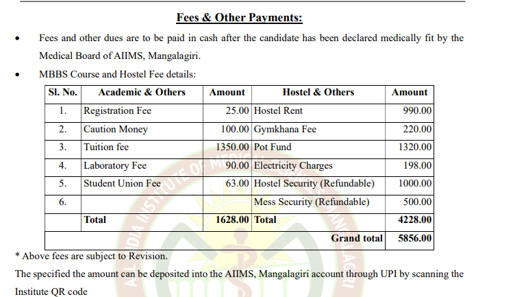 | AIIMS Mangalagiri | ₹ 1,628 |