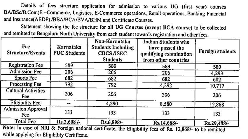 For students applying under the NRI quota for admission, the total course fee for B.Sc at Bengaluru North University Kolar is ₹ 52,658.