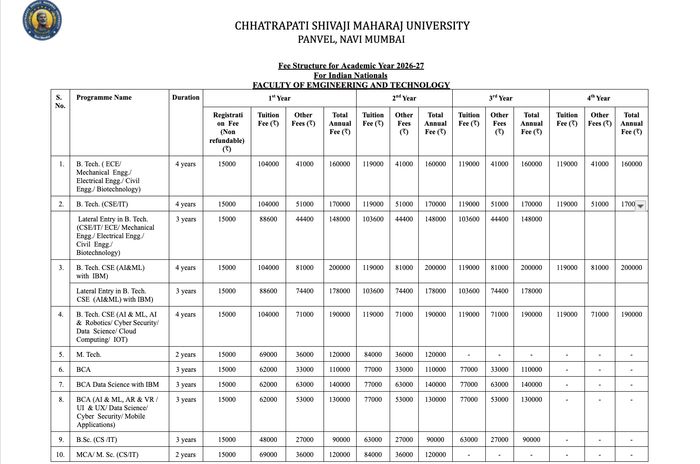 19 Jan, 2026 CSMU M.Tech Fee structure 2026-27 has been released. The total academic fee is ₹ 2.44 Lakhs.
