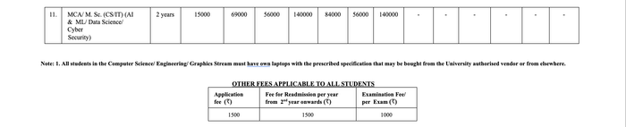 - Candidates need to pay ₹ 1.23 Lakhs in the first year.
