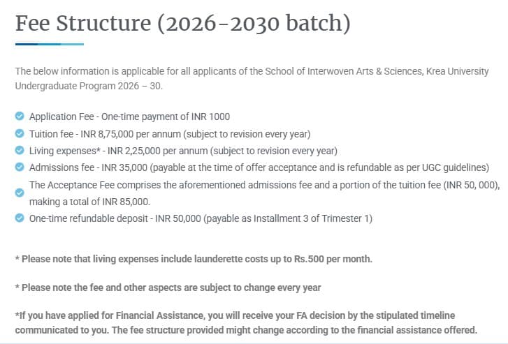 Candidates must have at least 10+2+KAT to be eligible for admissions. Check Krea University Sri City Admission 2025