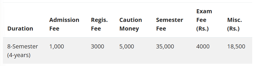 | Semester Wise Fees | ₹61500 | ₹39000 | ₹39000 | ₹39000 | ₹39000 | ₹39000 | ₹39000 | ₹39000 |