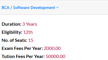 BCA Software Development at Shyam University Dausa is a 3 Years Degree. The course is offered On Campus as a Full Time program. Shyam University Dausa BCA Software Development First Year Fees is INR 52,000 for 2025.