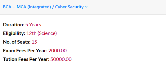 BCA + MCA Cyber Security & Forensics at Shyam University Dausa is a 5 Years Degree. The course is offered On Campus as a Full Time program. Shyam University Dausa BCA + MCA Cyber Security & Forensics First Year Fees is INR 52,000 for 2025.