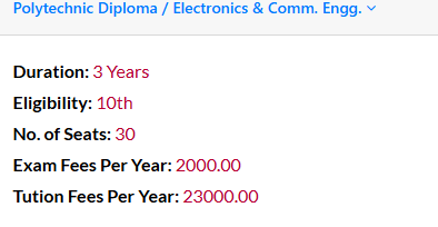 Polytechnic Electronics And Communication Engineering at Shyam University Dausa is a 3 Years Diploma. The course is offered On Campus as a Full Time program. Shyam University Dausa Polytechnic Electronics And Communication Engineering First Year Fees is INR 30,000 for 2025.