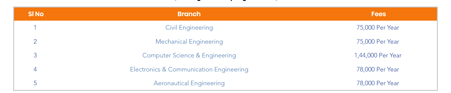| Fees (2025 - 2026) | Year 1 (in INR) | Year 2 (in INR) | Year 3 (in INR) | Year 4 (in INR) |