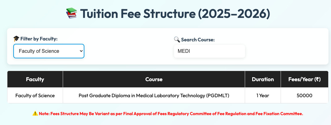 | Fees (2025 - 2026) | Year 1 (in INR) |