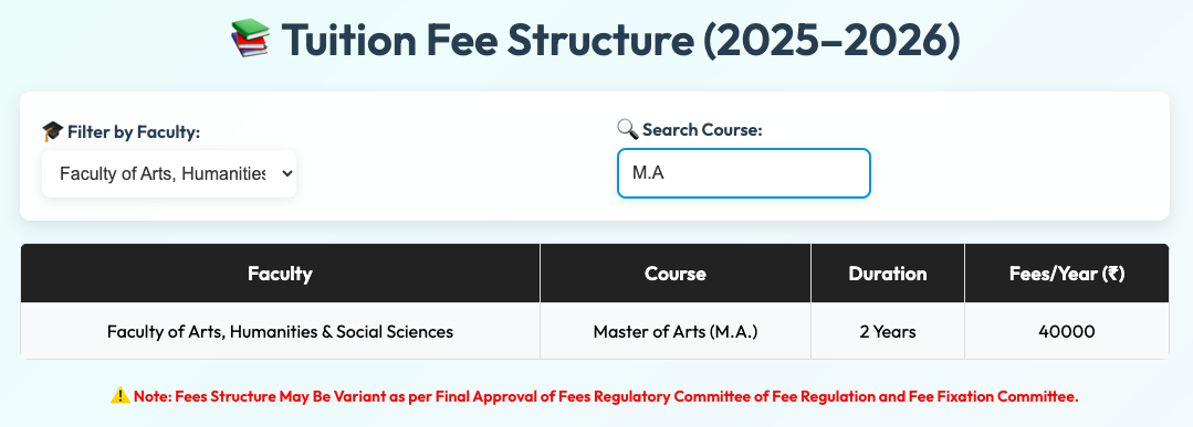 | Fees (2025 - 2026) | Year 1 (in INR) | Year 2 (in INR) |
