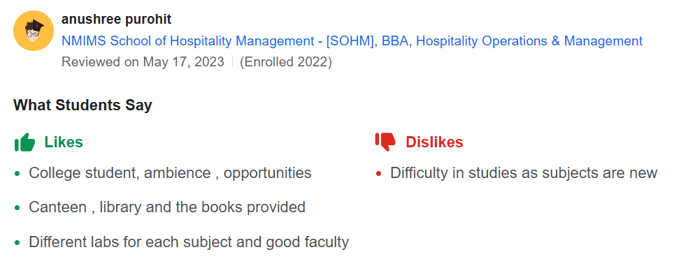 Students seeking admission to NMIMS Navi Mumbai can check the student reviews on Collegedunia for more details.