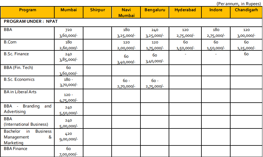 | NMIMS Navi Mumbai | ₹ 8.25 Lakhs |