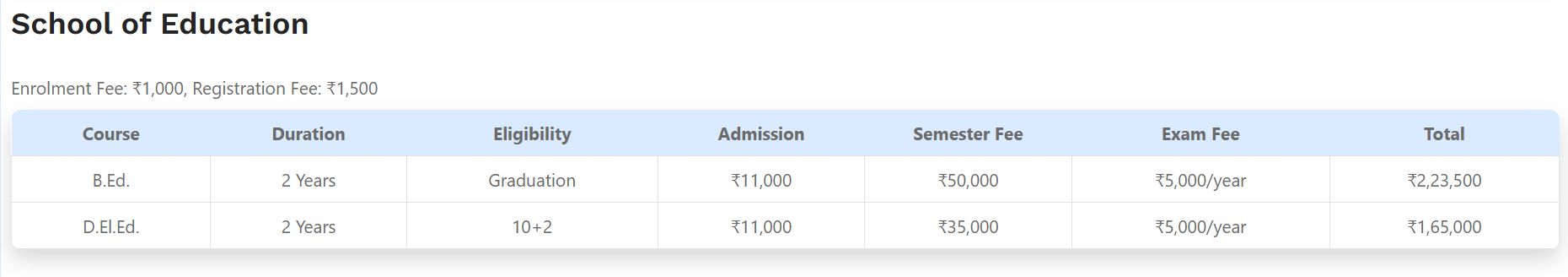 Earlier, B.Ed fees at YBN University Ranchi was ₹ 1.79 Lakhs (in 2020) for the entire course duration. This shows a fee increase of ₹ 14,500 over the year.