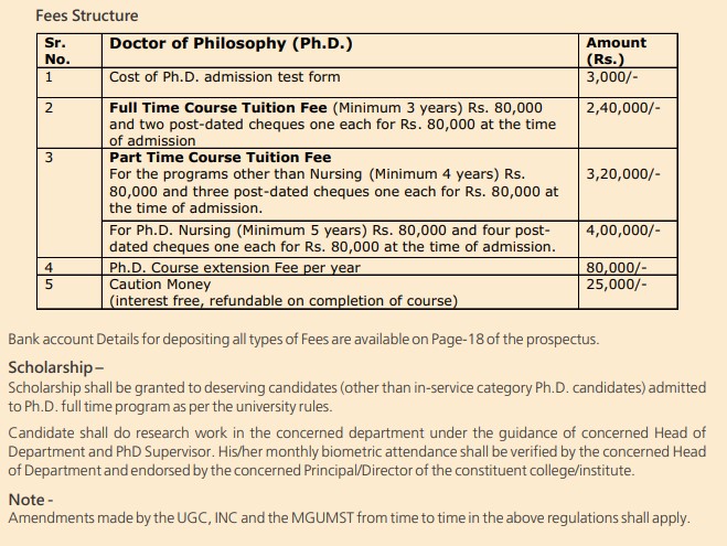 | Cost Of Ph.d. Admission Test Form | ₹3000 | - | - |