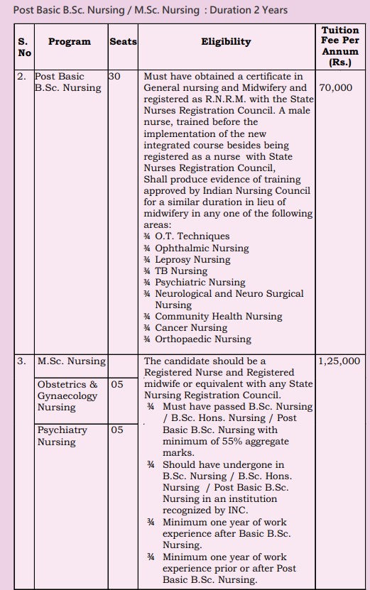MGUMST P.B.B.Sc Nursing is offered as 2 Years Full Time program, with total intake of 30 seats. The minimum eligibility criteria for P.B.B.Sc is GNM. The total fees for MGUMST P.B.B.Sc Nursing in 2025 is ₹ 1.71 Lakhs for the complete course duration, which includes total tuition fees of ₹ 1.4 Lakhs.