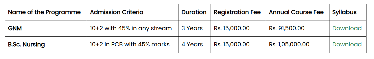 | Fees (2025 - 2026) | Year 1 (in INR) | Year 2 (in INR) | Year 3 (in INR) |