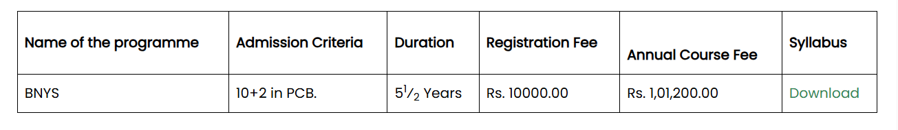 | Fees (2025 - 2026) | Year 1 (in INR) | Year 2 (in INR) | Year 3 (in INR) | Year 4 (in INR) | Year 5 (in INR) |