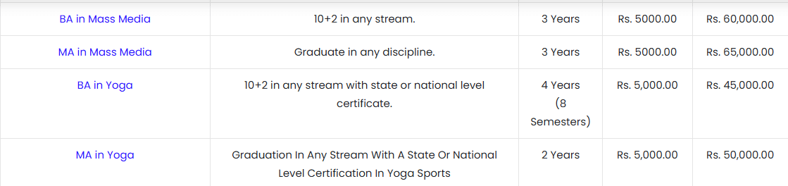 | Fees (2025 - 2026) | Year 1 (in INR) | Year 2 (in INR) | Year 3 (in INR) |
