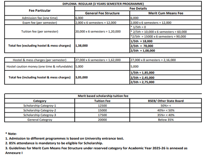 The course includes an admissions process that features a group discussion and a written test. The tuition fee is 53,000 per month, while the hostel fee is 55,000 per month. For the entire 3-year course, the total fee amounts to 398,560. Unfortunately, there is no scholarship system available to help offset these costs.