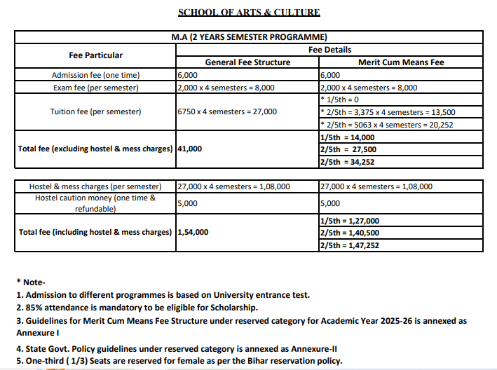 KK University MA English fees in first year is ₹ 23,500. The detailed fees is mentioned below.KK University Hostel Fee is ₹ 32,000.