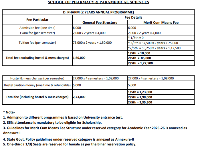 KK University D.Pharm Pharmacy fees in first year is ₹ 83,000. The detailed fees is mentioned below.KK University Hostel Fee is ₹ 32,000.