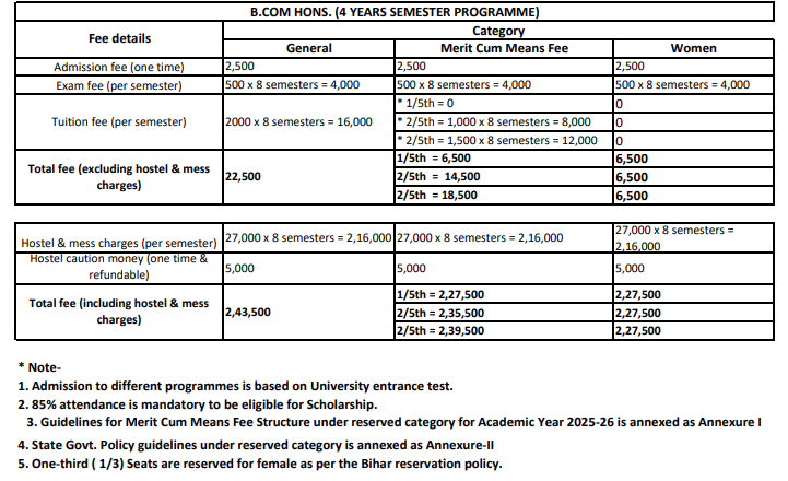 KK University B.Com {Hons.} fees in first year is ₹ 7,500. The detailed fees is mentioned below.KK University Hostel Fee is ₹ 32,000.