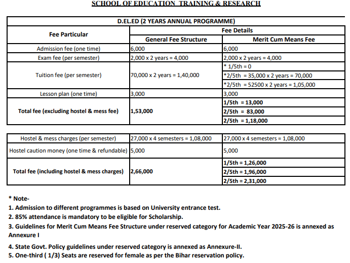 KK University D.El.Ed. fees in first year is ₹ 81,000. The detailed fees is mentioned below.KK University Hostel Fee is ₹ 32,000.