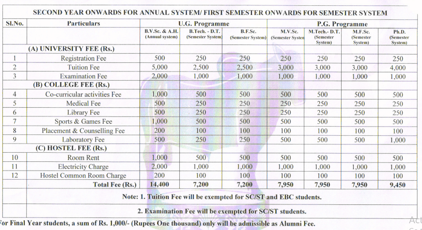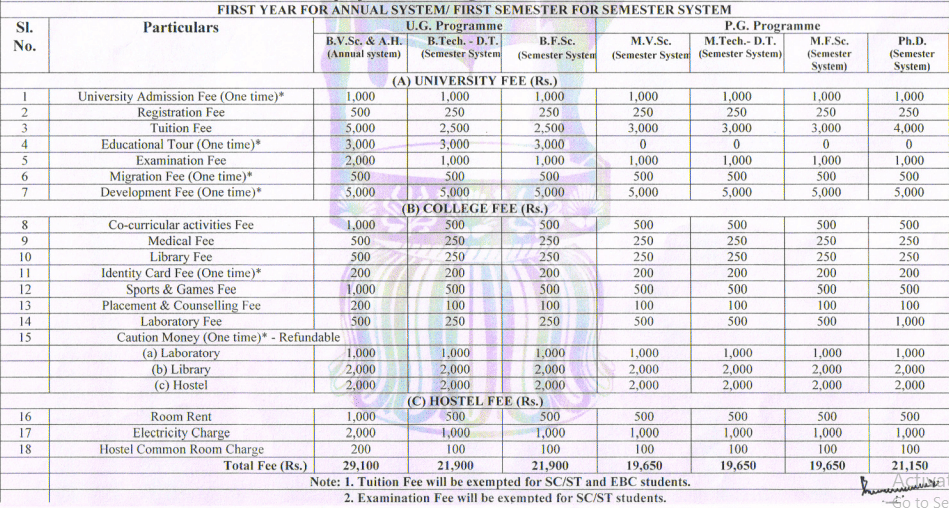 Bihar Animal Sciences University Patna M.F.Sc fees 2025 is ₹ 37,100 for the entire course duration.