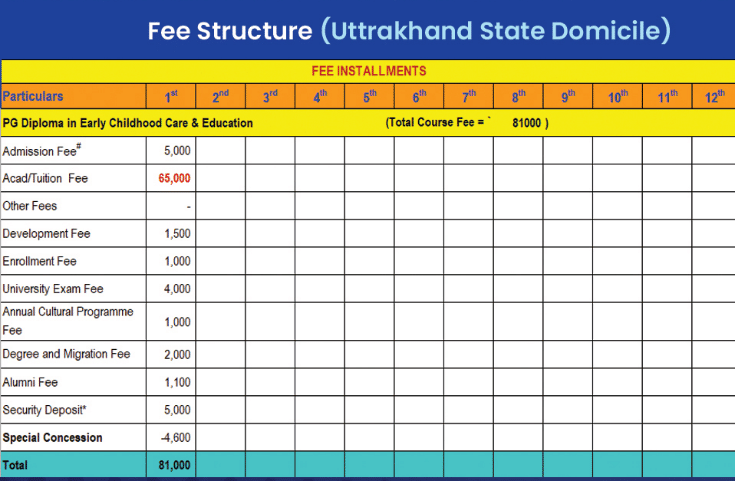 SGRRU Diploma Early Childhood Care and Education fees 2026 is ₹ 1.07 Lakhs for the entire course duration.