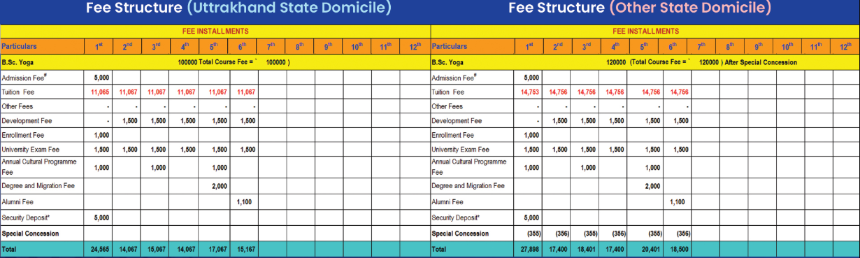B.Sc Yoga Sciences Fees at SGRRU covers a range of expenses, including tuition fee, course materials, and access to campus facilities.