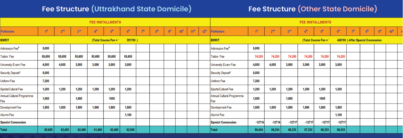 The course fee structure requires a first-year payment of 6,500, which includes costs for the library, dress, and sports fees. Students from the school of SGRR might be eligible for a scholarship, which could help lower the total cost of the course.