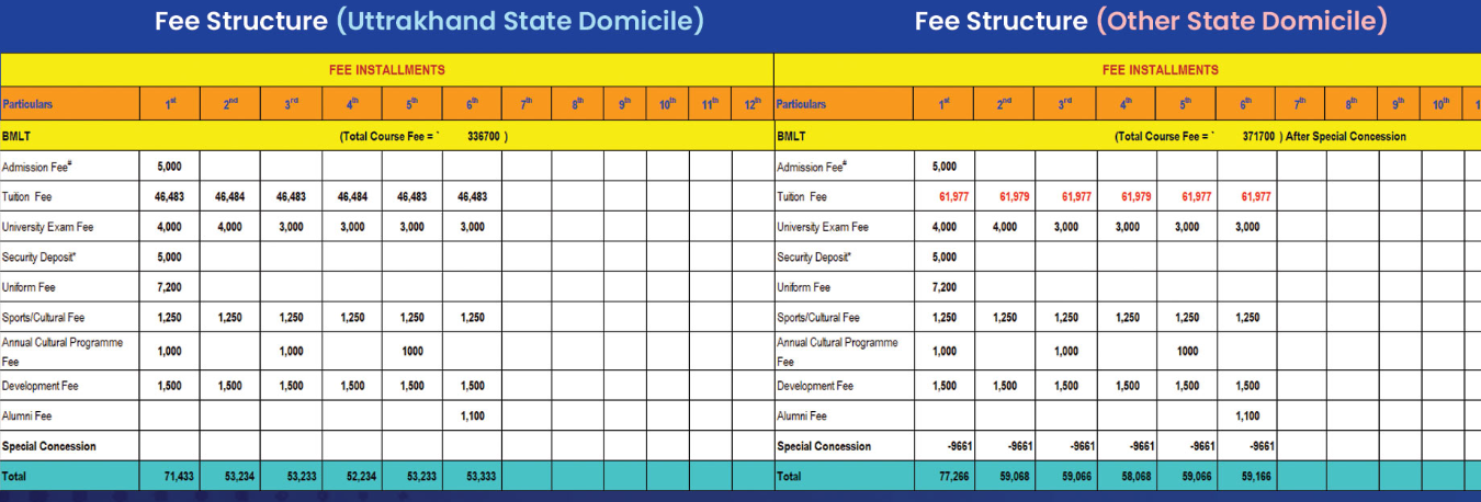 06 Jan, 2026 SGRRU BMLT Fee Structure 2026 has been released. The total academic fee is ₹ 4.39 Lakhs. Read more.