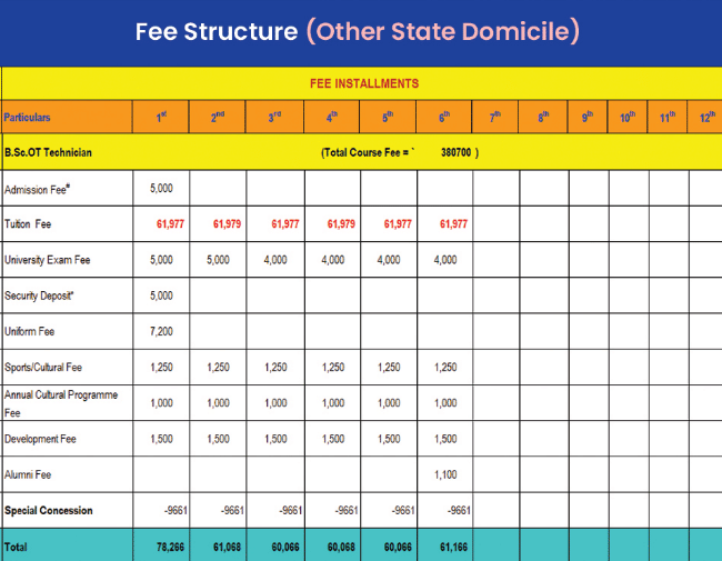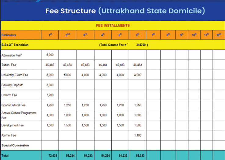 SGRRU B.Sc Operation Theatre Technology fees 2026 is ₹ 4.4 Lakhs for the entire course duration.