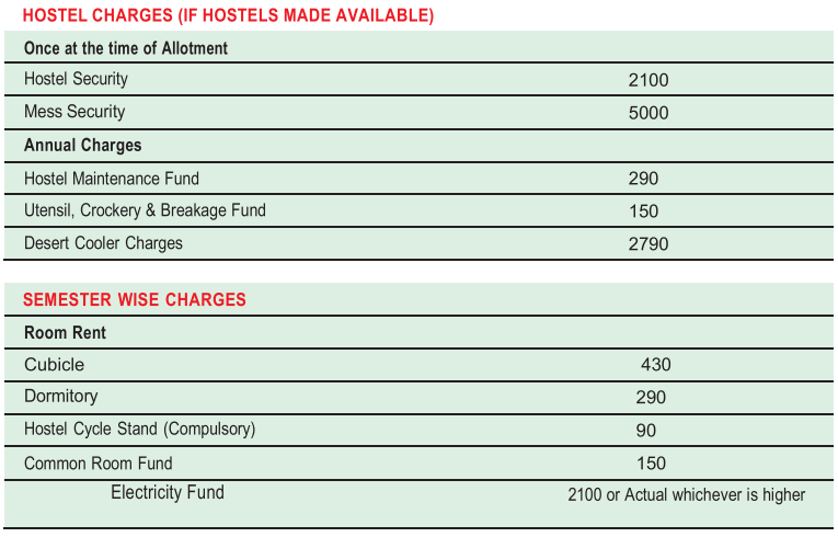 Hostel fees are billed separately from course fees. For students living off-campus, PG accommodation is an economic option at a rent of 300 per month.