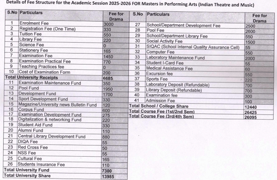 Cluster University (Jammu) M.P.A Theatre Arts fees 2025 is ₹ 1.05 Lakhs for the entire course duration.