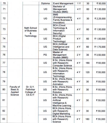 | Fees | Year 1 (in INR) | Year 2 (in INR) | Year 3 (in INR) | Year 4 (in INR) |