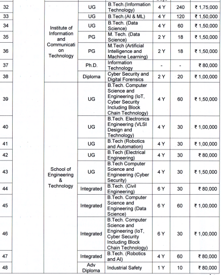| Fees (2025 - 2026) | Year 1 (in INR) | Year 2 (in INR) | Year 3 (in INR) | Year 4 (in INR) |