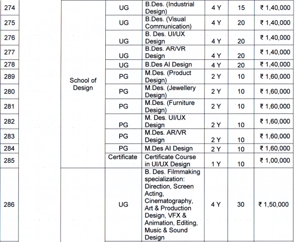 | Fees (2025 - 2026) | Year 1 (in INR) | Year 2 (in INR) | Year 3 (in INR) | Year 4 (in INR) |